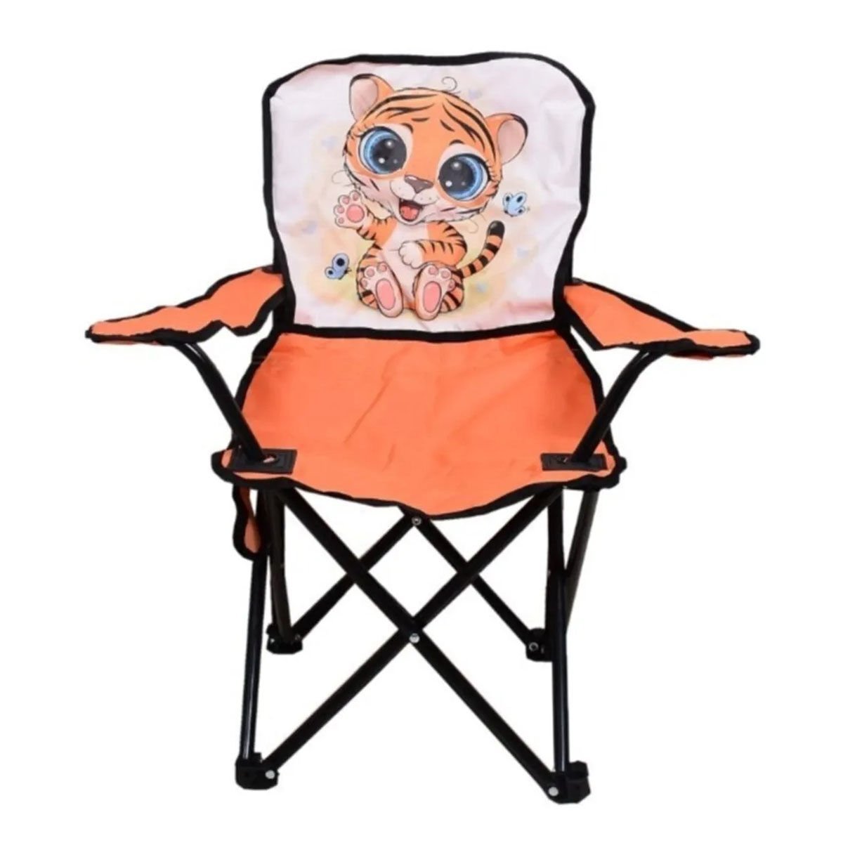 KampSeti Çocuk Katlanır Çantalı Kamp Sandalyesi Turuncu Kaplan Desenli