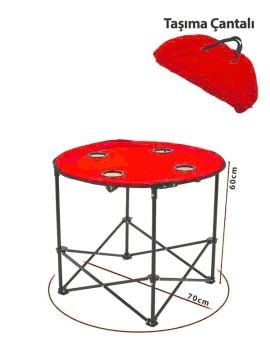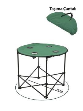 KampSeti Yuvarlak Katlanır Kamp Masası-70 X 60 Cm Taşıma Çantalı Piknik Masası